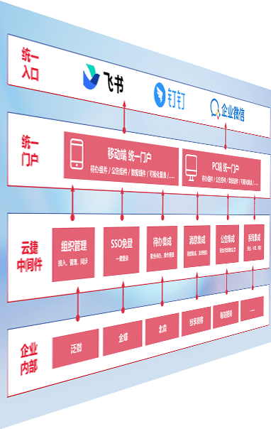 对协作平台提供支持服务,,,支持企业应用与协作平台对接,,,,包含组织同步、、消息集成、、待办集成等。。支持目前主流的协作平台:钉钉、、、、企微和飞书。。